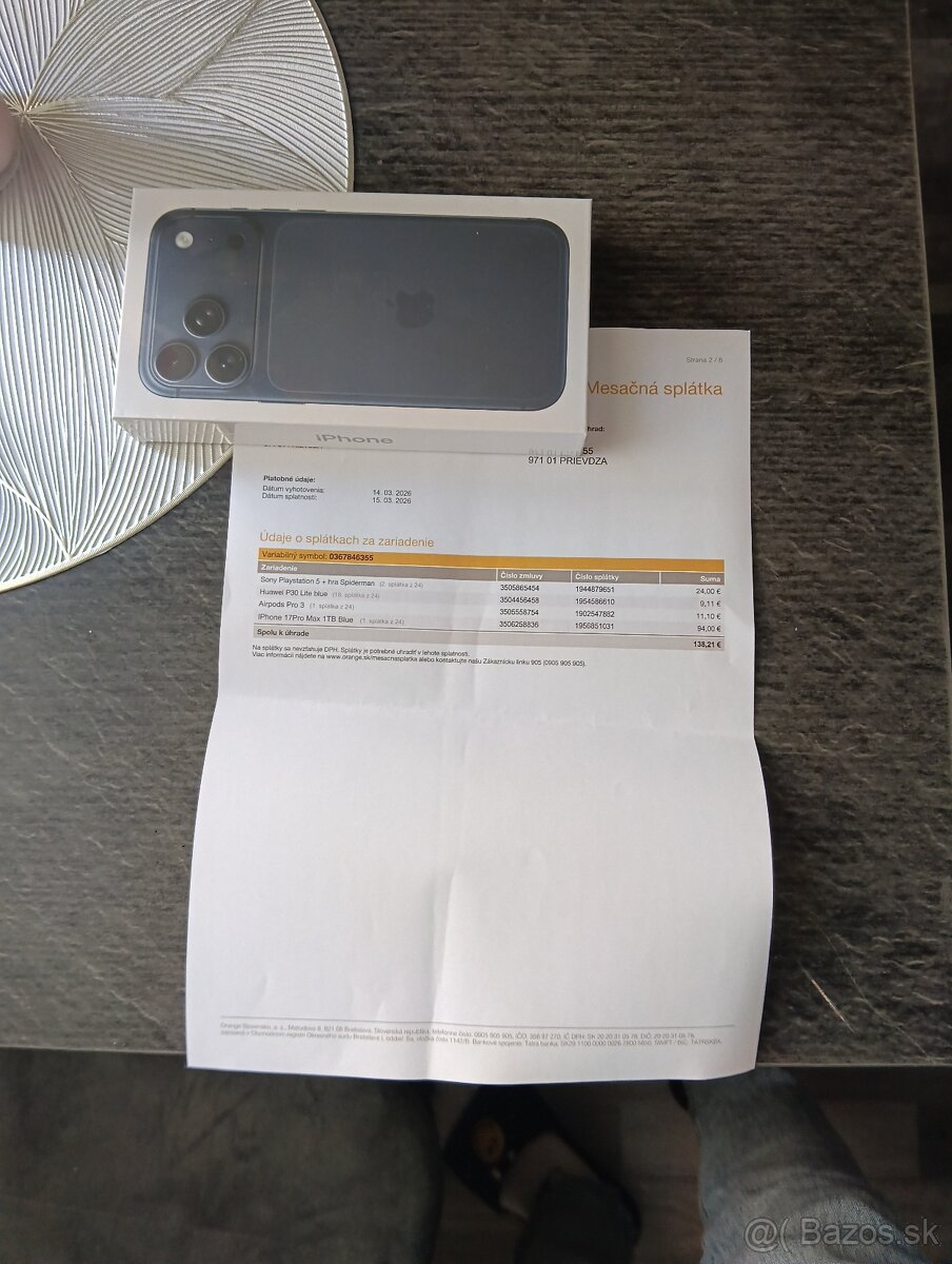 predam uplne novy iphone 17 pro max 1 tb vo farbe blue + doklad o kupe cena 800€