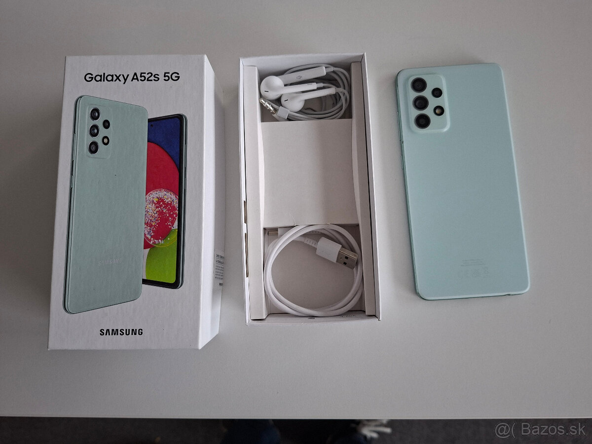 Predám Samsung Galaxy A52s 5G – 6.5" AMOLED 2400 × 1080, 120Hz, procesor Qualcomm Snapdragon 778G 8-jadrový, RAM 6 GB, neblokovaný, rýchle nabíjanie 25 W, batéria 4500 mAh. Originálne balenie s príslušenstvom, ako nový. Iba osobný odber.