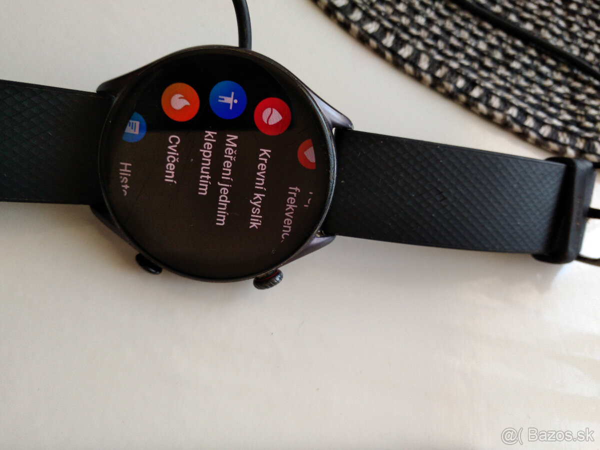 Amazfit GTR 3 Pro Black hodinky jsou používané, přední sklíčko opotřebení, nic hrozného, zohledněno v ceně, pouze hodinky a kabel, psát na WhatsApp, email,