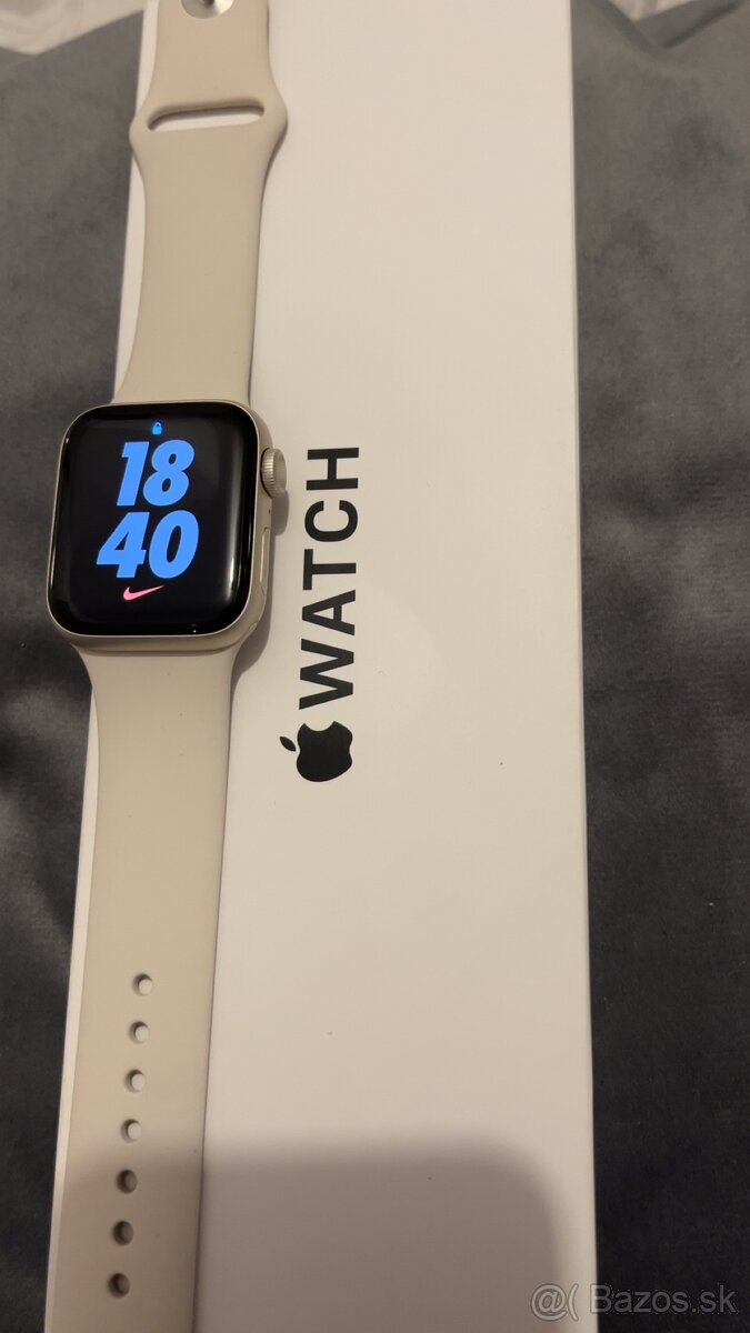 Predám Apple Watch SE (2. generácia) 40mm v elegantnej farbe Starlight. Hodinky sú vo veľmi dobrom stave, plne funkčné, bez vážnych poškodení.