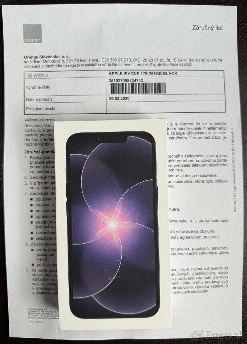 Predám Apple iPhone 17e 256GB, v Orange záruke 2r. s kompletným balením, neblokovaný v prípade záujmu len volať na sms neodpovedám. Na dobierku posielam po uhradení poštových nákladov vopred. Ďakujem