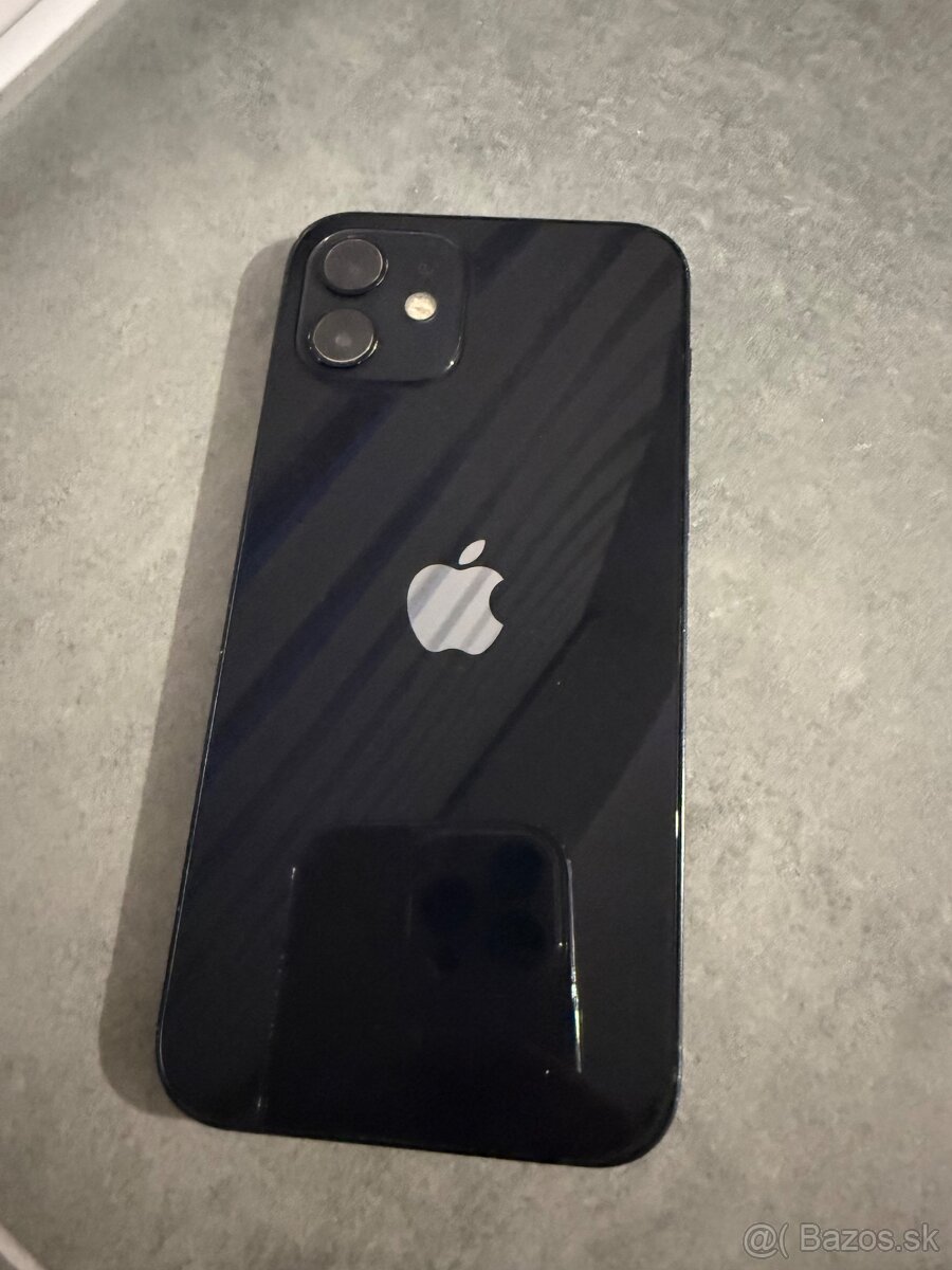 Dobrý deň, ponúkam na predaj iPhone 12 s uloziskom 128gb, je v čiernej farbe, zdravie baterie je 100%, bola menena nedávno za novú, neoriginálnu ale značkovú kvalitnú baterku. Na displeji bol taktiež menený displej, čiže je bez škrabancov. Je plne funkčný a pripravený pre nového používateľa. K telefónu je krabica a kabel
