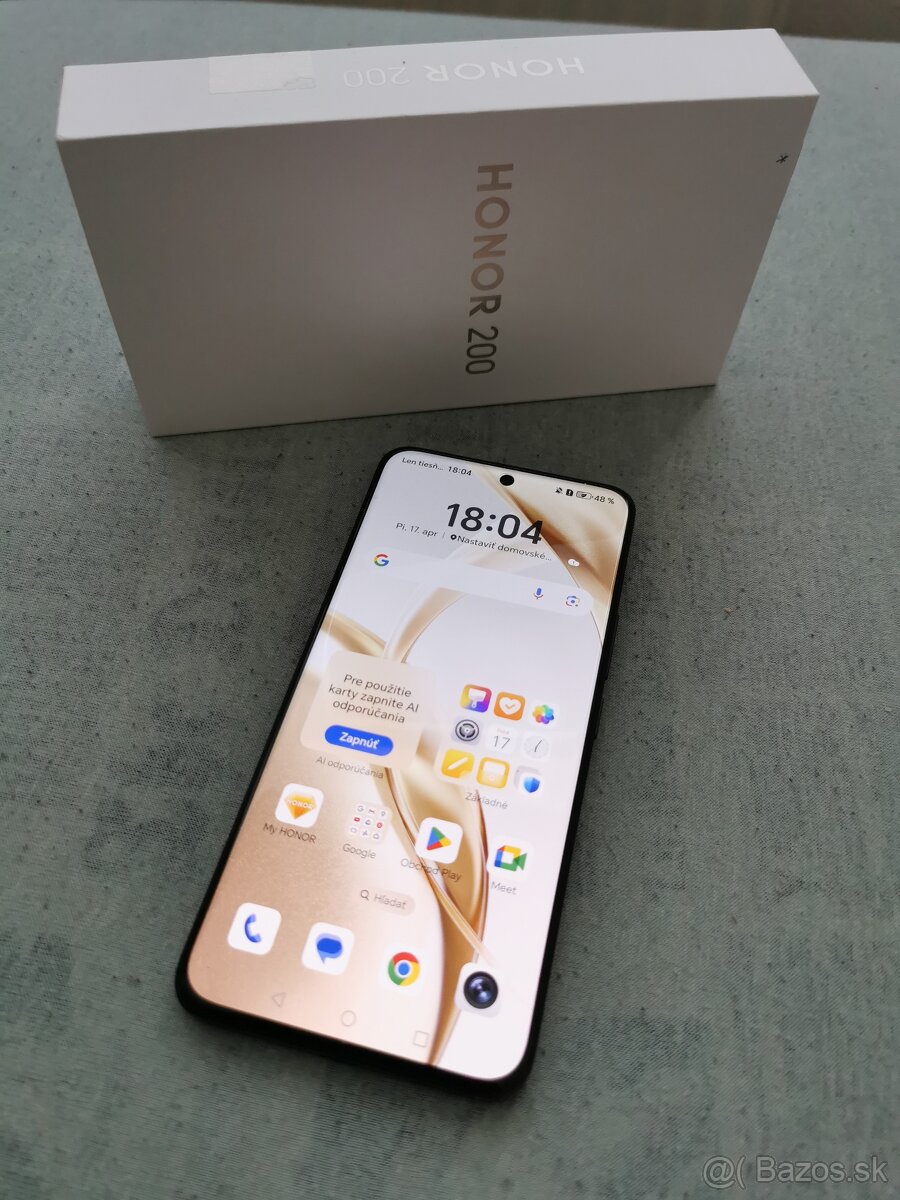 Predám v super stave tento smartfón Honor 200 5G, ktorý disponuje kvalitným 6,7" OLED displejom so svetelnosťou až 4000 nitov a 120 Hz, 8-jadrovým procesorom Qualcomm Snapdragon 7 Gen 3 či skvelým 50 Mpx hlavným fotoaparátom a 50 Mpx selfie kamerou. Smartfón ponúka možnosť Dual SIM, stereo reproduktory, čítačku odtlačkov, GPS, NFC, rýchle nabíjanie 100W vďaka USB-C, a nechýba ani veľká batéria 5200mAh. Úložný priestor má veľkú kapacitu 512GB. Mobil je veľmi zachovalý, neblokovaný, s krabicou a nabíjacím káblom.